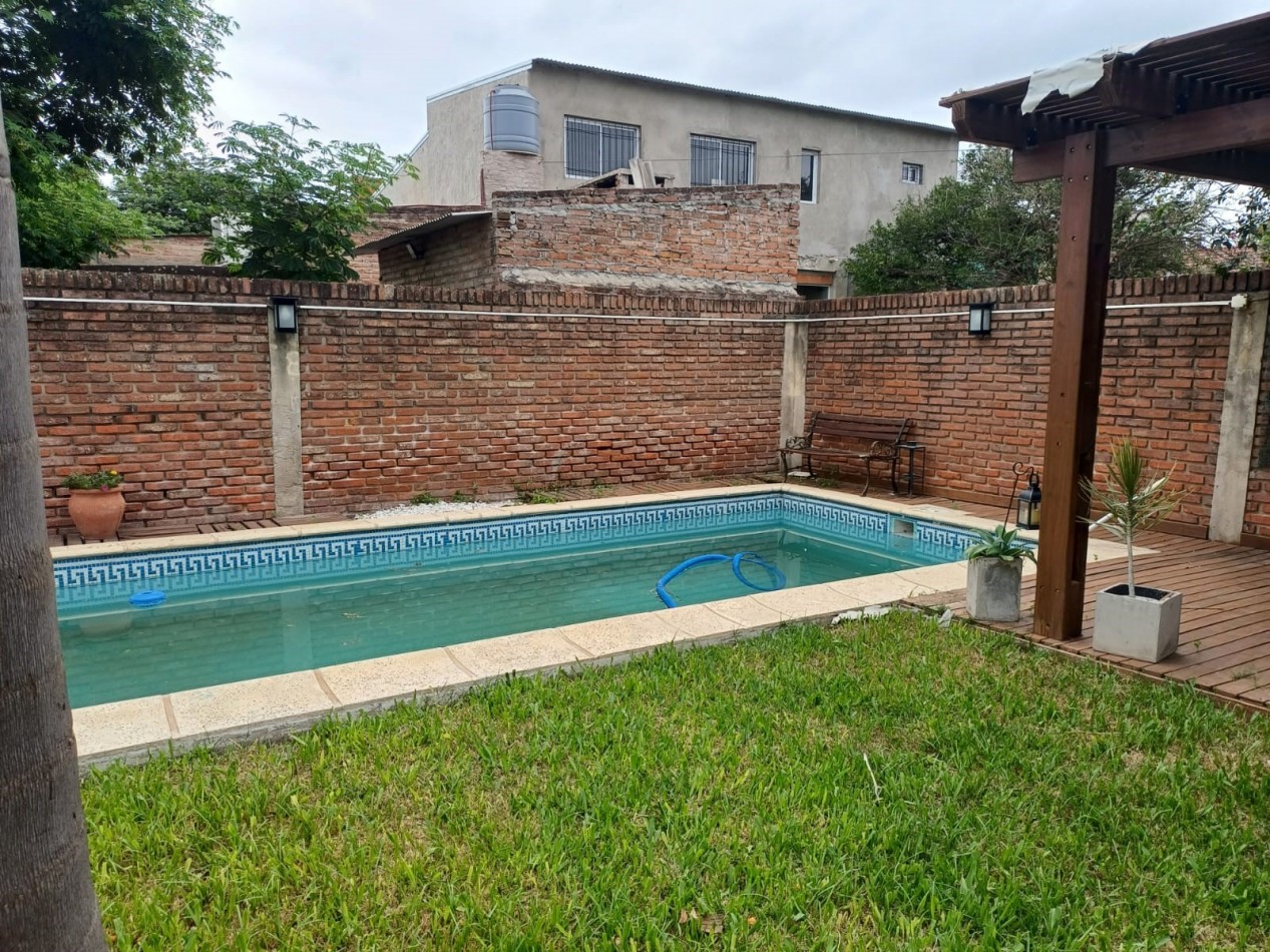 Posee amplio patio con piscina y asador